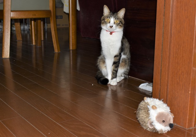 - ニャン子の日常・運んできたぬいぐるみで遊ばない